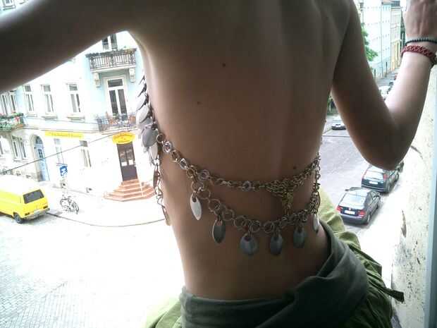 Para la cadena de la escala utiliza una sobra Aura-cadena (anillos: 11,52 aluminio, latón 7,6) y reemplazando los anillos inferiores de escalas y conectarse a la mitad el triángulo de estrellas de mar y los extremos a suma "las flores".