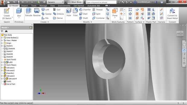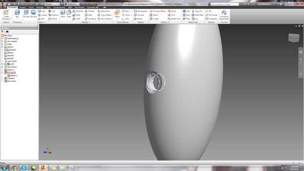 Este paso es simple y dulce. En primer lugar, hacer un plano que se desvía de las XY plano 5.2 pulgadas adelante, luego crear un dibujo en ese plano y haz un círculo desde el centro que tiene un diámetro de 2 pulgadas. Extrude(CUT) que círculo de 1,1 pulgadas en el cuerpo, con eficacia haciendo un agujero. Luego realizar un bisel el borde del agujero que es.35 pulgadas de profundidad en un ángulo de 45 grados, y listo!