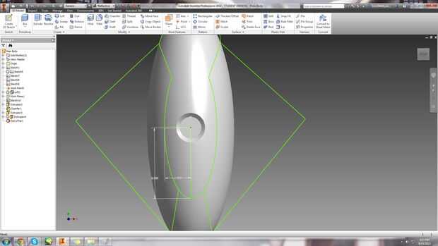 Desde el centro, hacer una línea de 2.4 pulgadas en el eje X y luego una larga línea 6.5, desde el centro, a lo largo del eje Y. Luego realizar una elipse usando los tres puntos.