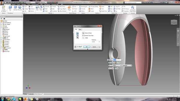 Ahora seleccione el comando de Shell (no Chelle) y establecer el espesor a.3 pulgadas. Seleccione las caras en el cuerpo y el brazo que se eliminarán (como se muestra arriba) y haga clic en finalizar.