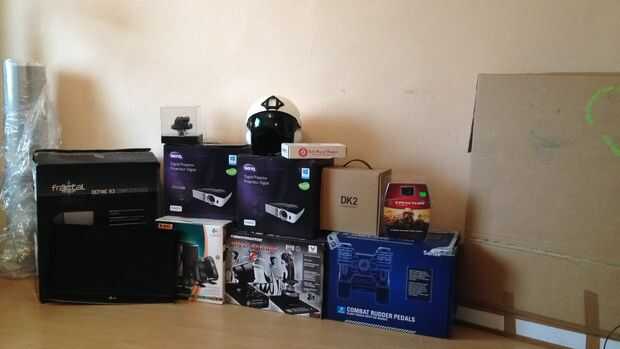No te olvides de agregar hardware. Construí en Thrustmaster Hotas Warthog, pedales de timón combate de Saitek, 22'' pantalla y trabajando en curvo pantalla ya que tengo dos proyectores. Pero puede usar lo que tienes en casa.
