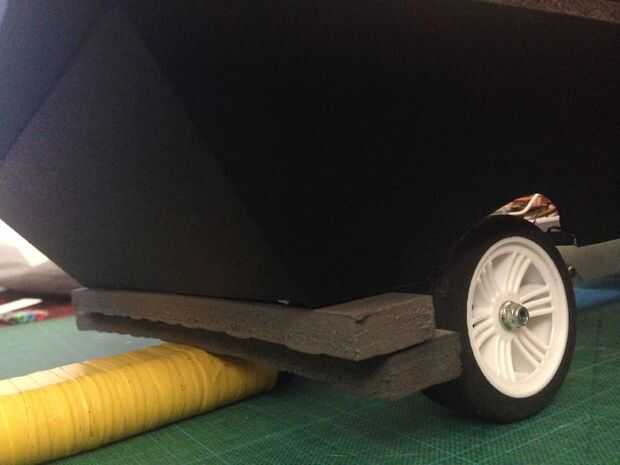 una vez que sepa su correcto todo su tiempo para cortar la rueda de los pozos hacia fuera. Los pozos posteriores son bastante fáciles sólo tiene que utilizar los planos laterales e inferior (Asegúrese de que usted corte detrás en el centro hacia el chasis lo suficiente para dar cabida a las ruedas y ejes.