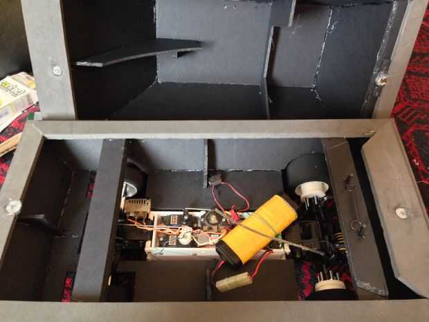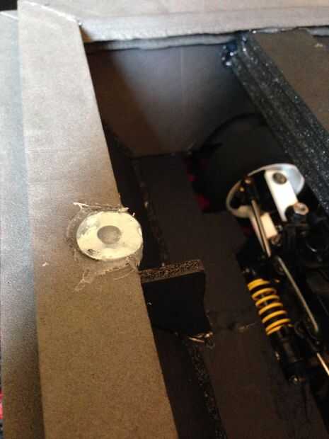 en la carcasa superior me corte un pequeño agujero y pegar el imán en la espuma en la parte delantera y trasera. y en la concha inferior pegué la lavadora a la espuma usando pegamento caliente. Esto evitará que la cáscara juntos mientras el droide está funcionando.