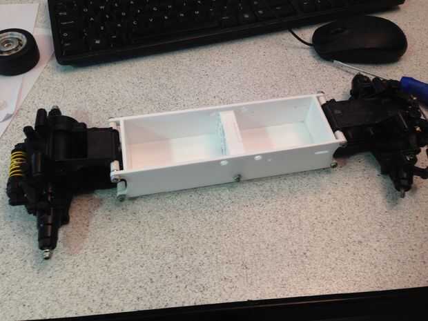 La base que llevaba era de alrededor de 230mm y 310mm por lo que necesitaba para ampliar el centro del chasis original hacia fuera por alrededor de 80mm por lo que mide uno existente y marcados todos los orificios de los puntos de montaje de los servos y todos los etc. de electrónica los actuales tornillos y tuercas atornillar el frente y hacia la nueva extensión de chasis de asambleas necesitaba de la rueda. Esta casa de toda la electrónica que se mover mi ratón.