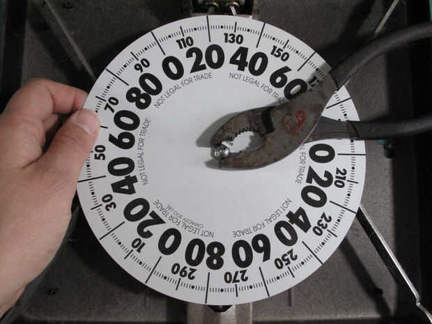 • Con su llave de dandy práctico seguir adelante y desenroscar la tuerca que sostiene el disco con números indicando pesos.