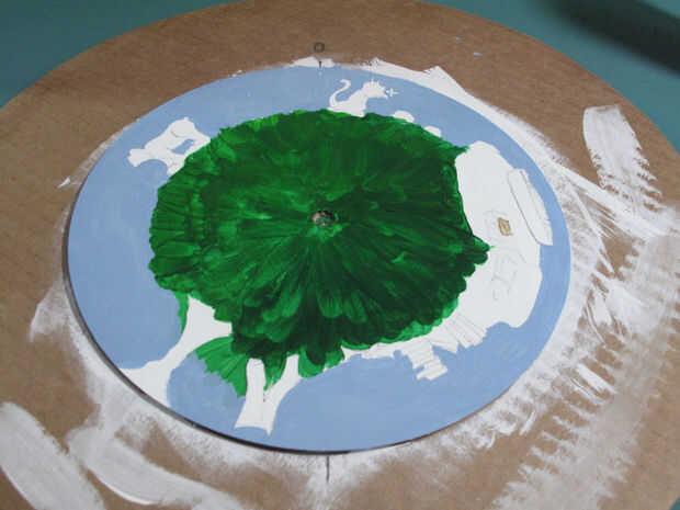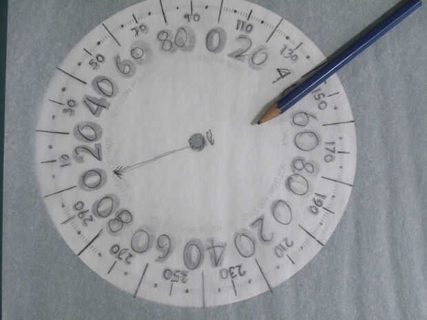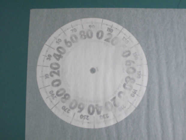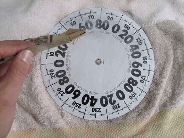 - Con la imprimación de pintura metálica, pintura el disco... tenga cuidado de no ir sobre el indicador de cero en su cartulina.
