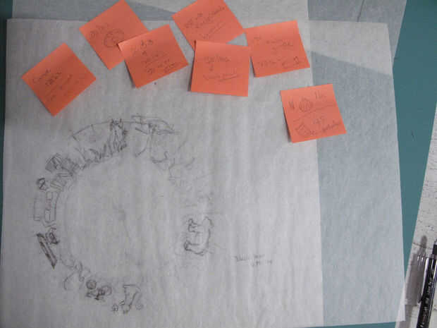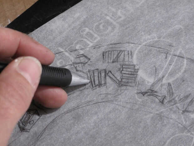 - En otro pedazo de papel de calco bosquejar un diseño encima del trazado hecho del indicador de peso.