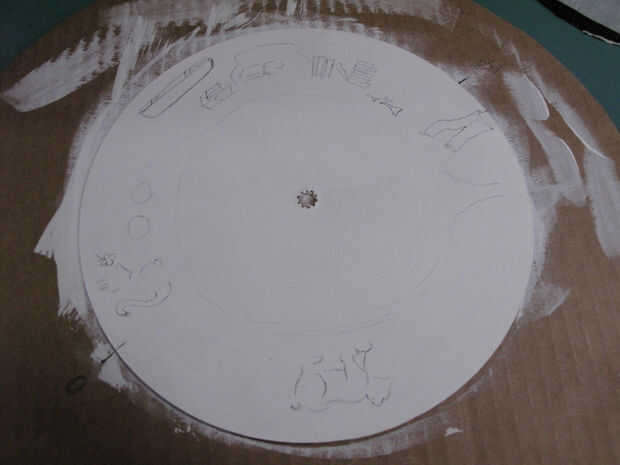 - El peso que indica el disco, a un pedazo de cartón con cinta adhesiva. Esto es así, puede pintar y se mueve con trazar.