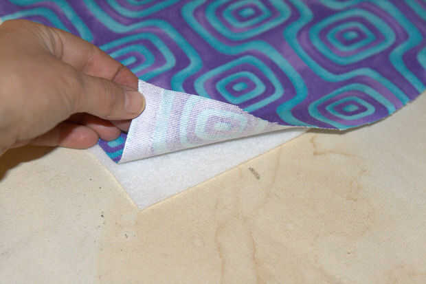 - Fusible de la web fusible dobles del palillo a él. (mantenga el papel por un lado y no hierro largo).
