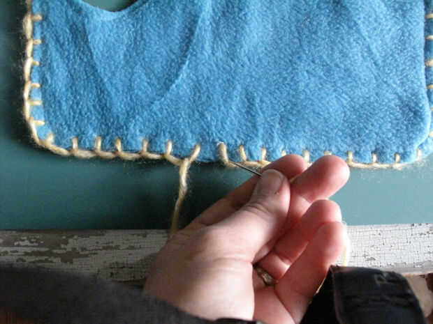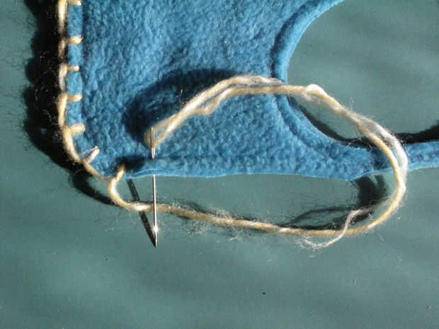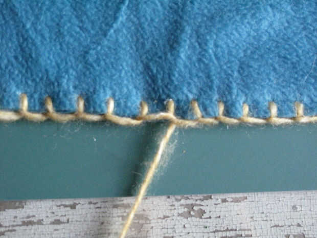 - I luego Manta Cosida alrededor de los bordes con un hilo. (Ver las imágenes de la puntada de manta) Este paso fue un poco duro en mis dedos... Creo que porque mi hilo estaba tan gordo.