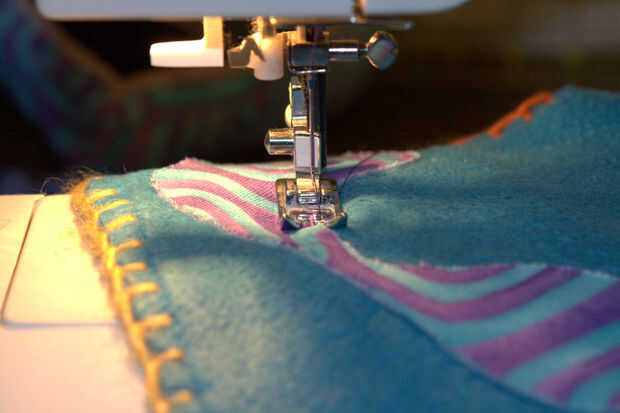 - Utilizando una puntada de zig zag y el hilo de su elección (necesitarás un poco), coser alrededor de los bits de impresión del pie.