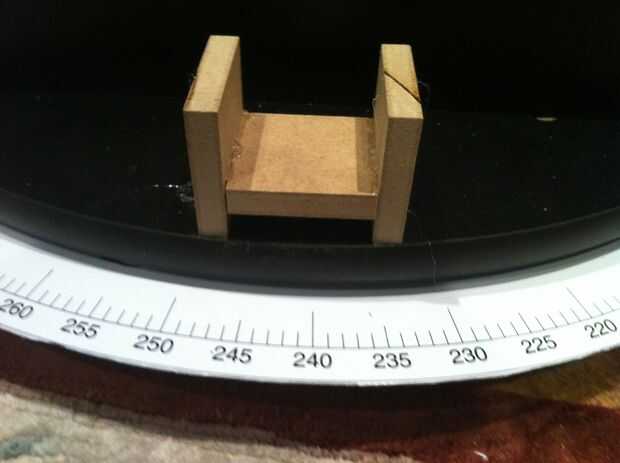 Los trozos de madera fueron los 5cmx5cm y pegan juntos, uno de ellos con una forma de "u" así que, como se puede ver, pongo un pin en el centro de la "u", por lo que me dice los grados de acimut. Este mecanismo puede colocarse hacia adentro y hacia afuera para no frenar. Esto se hizo con tres de los 5x5cm paces de madera.