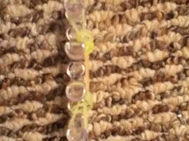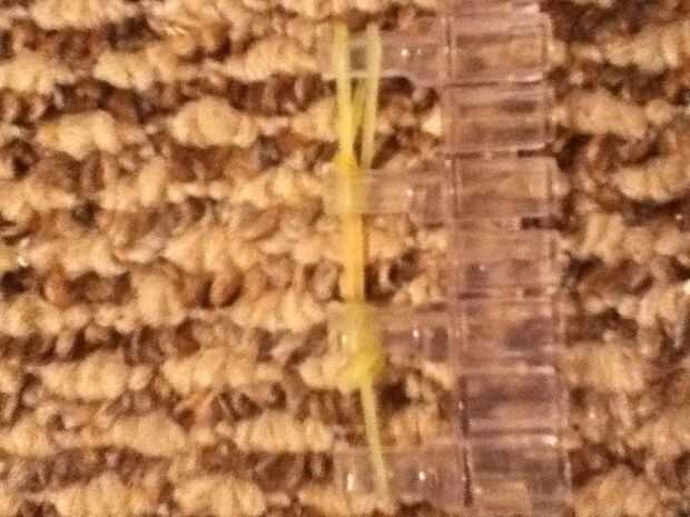 Cualquier cosa debajo de otra banda, traer detrás de la clavija. Después de este paso sólo debe ser un color que muestra frente a las clavijas.