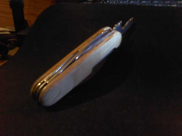 Aquí fue un proyecto por la tarde hice uso de plano de madera de 2 por 4. Primero quité la balanza con otro cuchillo y luego los trazó sobre madera de repuesto. Muy groso entonces corté el diseño usando una sierra de mano. A continuación utilicé una banda de lija eléctrica. A continuación, redondea los bordes con una lima y lijar más. Luego perforé los agujeros para los remaches. Luego había manchado las escalas y había aplicado para el cuchillo utilizando el pegamento.
