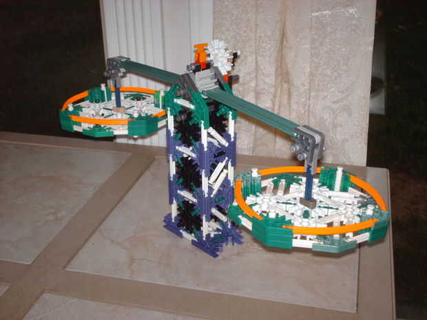 aquí es una escala de equilibrio de KVG hice hace unas semanas. Es utiliza un pivote simple y dos brazos. Tiene un puntero en la parte superior junto con un dial para decirles hasta qué punto de equilibrio es. No utiliza muchas piezas por lo que la mayoría de la gente puede construir. Este es el primero que conozco en el sitio hasta ahora. Utiliza dos cestas grandes para sujetar los elementos están equilibrados. Esto puede usarse también para contar los elementos de la misma masa. Naturalmente esto tiene muchos usos.