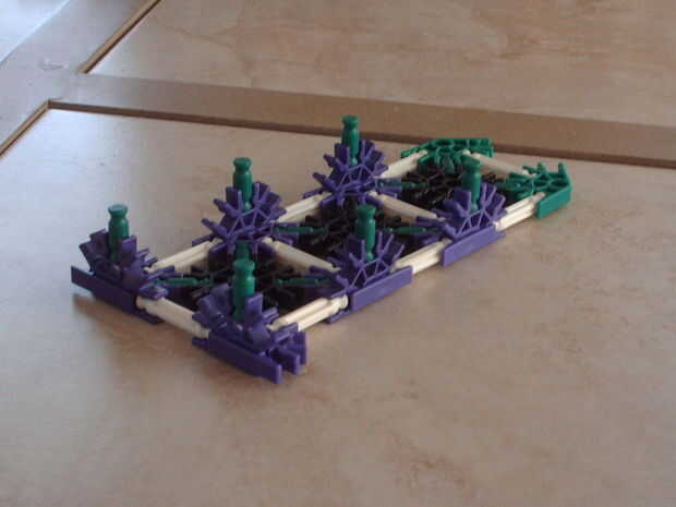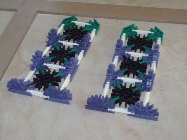 En este paso construiremos el cuerpo principal de la escala. En primer lugar construir estos dos lados. Imagen 1 Luego añadir barras verdes a uno de los lados. Foto 2 Y conectar los dos lados juntos foto 3