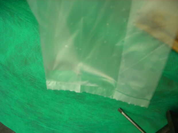 Colgué una bolsita de polietileno del gancho del extremo del alambre, puse en cero el alambre de acero perder modelo el soporte del mismo, apreté el tornillo y empecé la tarea de hacer las marcas.