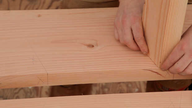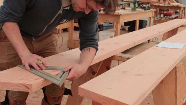 Utilizando el cuadrado de la velocidad y una cinta métrica, marca hacia fuera toda la escalera pisada ubicaciones. Recuerde, su ángulo de pisada va a ser el mismo ángulo de corte en la parte inferior del larguero de 2 "x 12". (18 grados). Es importante conocer la ubicación de cada pisada antes de empezar a cortar los bolsillos con un router.