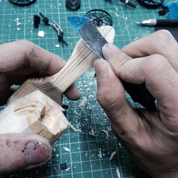 Luego, marque la parte impresa en su lugar, marca, talla y combinar el tablón tallado para comprobar las proporciones y la parte impresa. después de todo en su lugar y las proporciones está bien, retirar la parte impresa y arena por la vez última con el papel de P1500 arena para el siguiente paso.