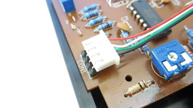 Para poder controlar remotamente la escala tenemos que separar la celda de carga y el circuito de control. Para ello, primero Desenroscar la celda de carga y el circuito de la caja. Luego desconecte el cable de la celda de carga de las patillas del conector en la placa de circuito.