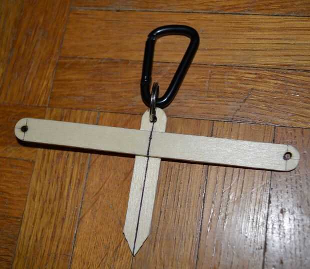 Lugar el anillo en el orificio del palo corto y el mosquetón enganchado en el anillo.