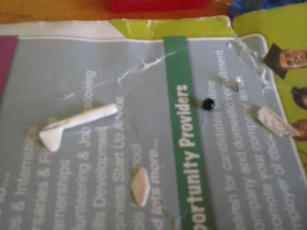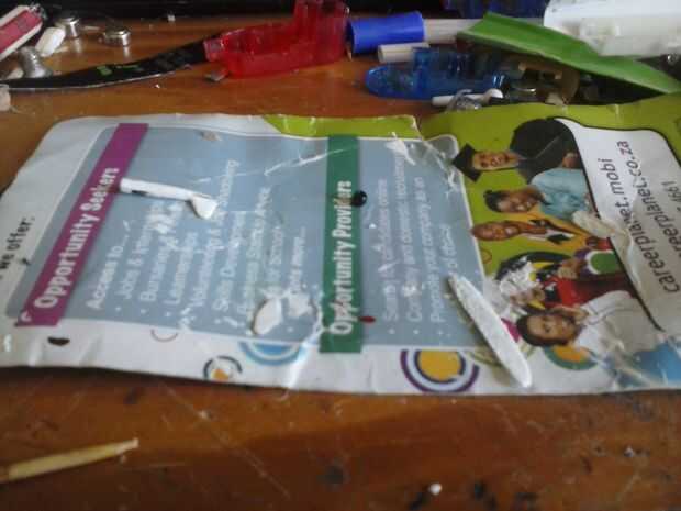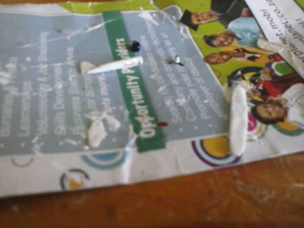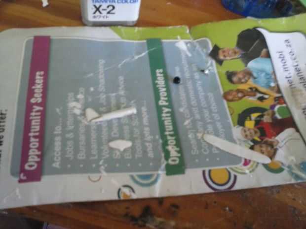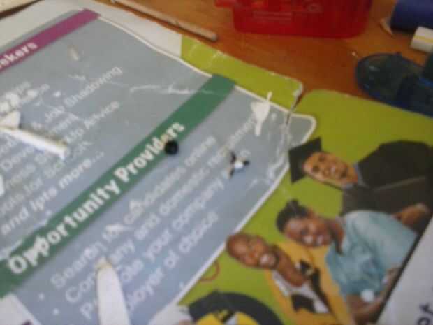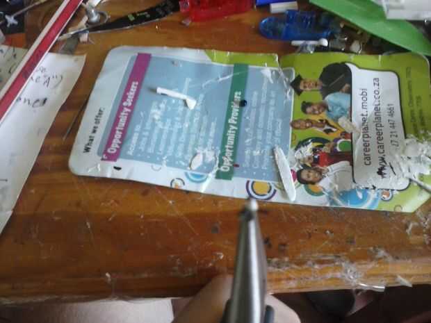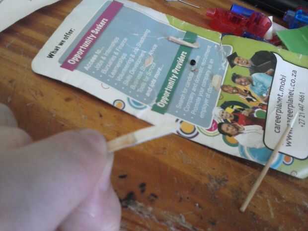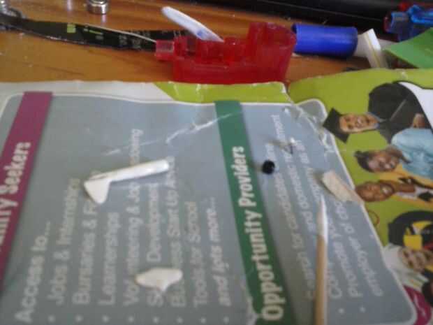 La pintura blanca la hélice negra y spinner (pedazo de palillo de dientes).