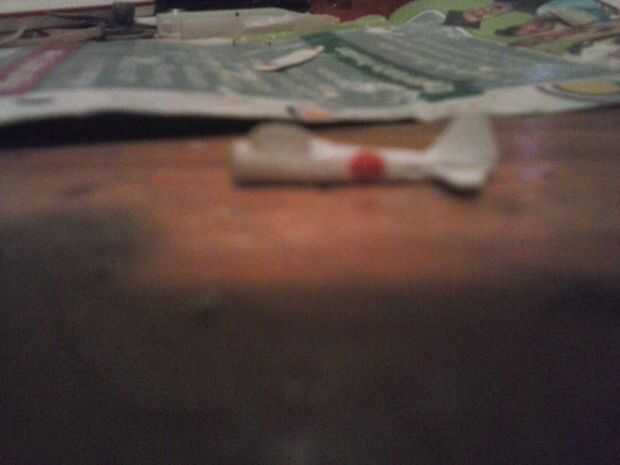 Corte una ranura en la parte superior del fuselaje y uno bajo para pegar el pabellón y alas en. Pegar la cabina ahora. Para terminar la parte más atrás del pabellón de corte un trozo de balsa y pegado que en detrás de la cabina, después de lo cual he pintado ti que se vea como parte del fuselaje.