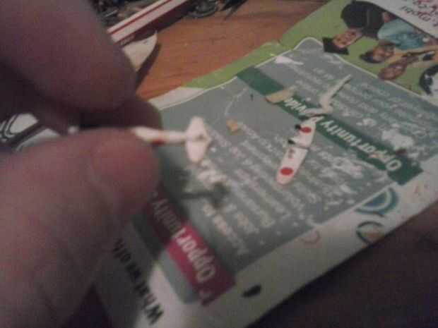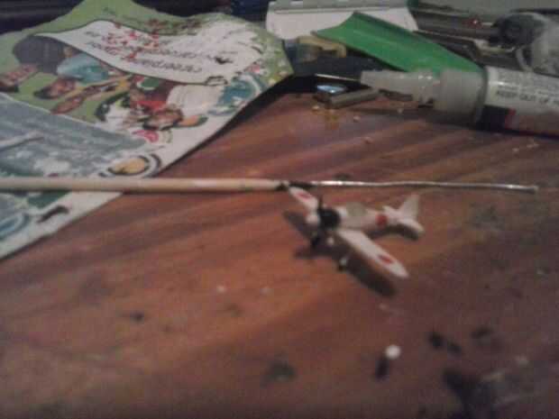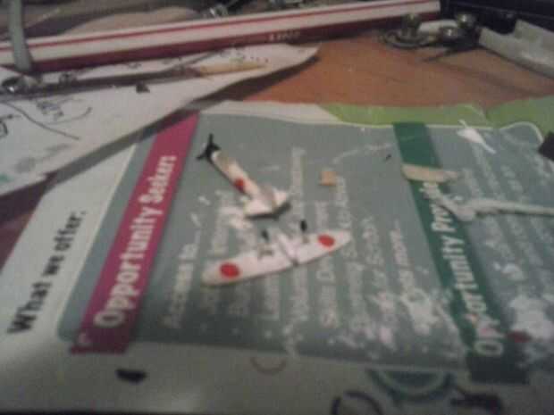 Este modelo está casi listo, pegar las alas en la ranura en el fuselaje que hiciste anteriormente. Para mezclar la parte superior del ala al fuselaje corte 2 pequeñas tiras de madera y pegarlos en el ala cerca del fuselaje como puedas. Luego pintar sobre él hasta que se ve bien. También pintar la base de las superficies de cola para hacer lo mismo allí.