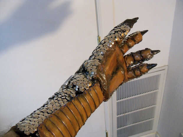 Quería hacer una proposición interesante sin tener que gastar demasiado dinero. He visto kits de escala de dragón que usted puede hacer punto en guantes de aspecto genial, pero nada tenía los dedos o garras. Esto me dio una idea para hacer un guante de dragón. Es un proceso simple (si es tedioso) de hacer este tipo de apoyo, y costó en total $20 para hacer! Espero que disfruten este instructable, sé que realmente lo disfruté.