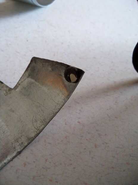 4. martillo de bordes (opcional). Esto da la ilusión de un poco más grueso. Simplemente la abrazadera hacia abajo de un martillo de bola como un yunque improvisado y usar otro martillo en la cabeza redondeada a los bordes del martillo hacia abajo. Esto no tarda mucho en todo
