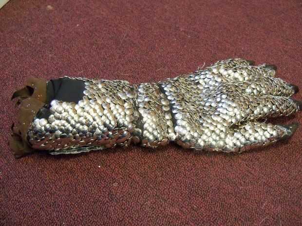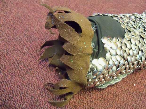 Añadir cualquier adorno deseado. He añadido un trapo deshilachado a la espalda en un intento de hacer que se vea como el guante fue fundido a mi brazo. Definitivamente no funcionó hacia fuera muy bien.