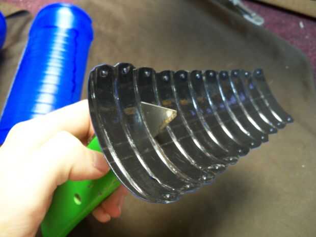Áspero por toda la superficie con papel de lija para pintura más adelante. Perforar agujeros pequeños en cada sección con una aguja. Corte entre cada sección para el fácil movimiento de las placas. Si usted siente que esto puede romper, reforzar la parte de atrás a lo largo de los lados con cinta.