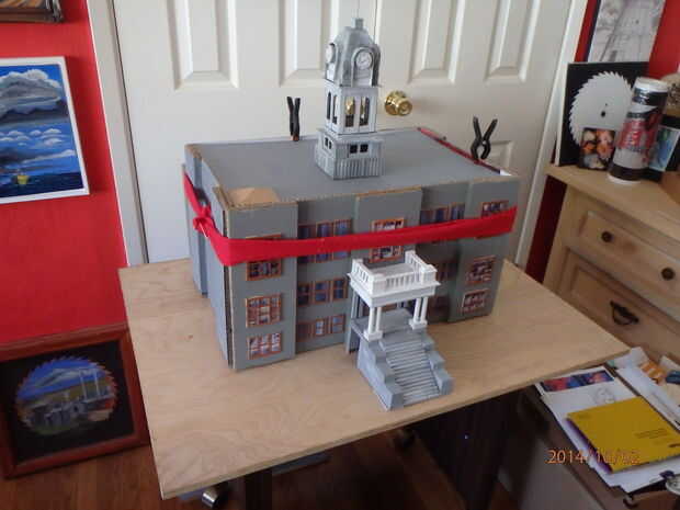A juzgar de donde yo estaba en el, que montado el modelo como se muestra. Una pieza elástica de tela fue atada alrededor de las paredes y las abrazaderas fueron utilizadas en algunos puntos claves. Más tarde utilizaría algunos pernos pequeños, 4 en total, realmente empernar las paredes juntas en las esquinas del extremo. Estaba satisfecho con los resultados hasta el momento. Proporciones y relaciones de las partes parecían bastante exactas.