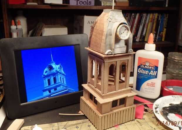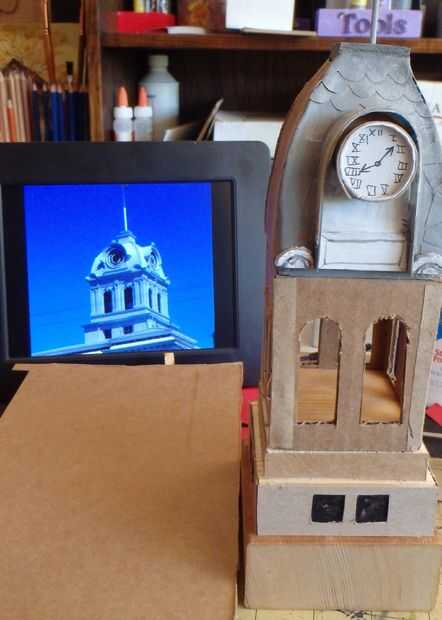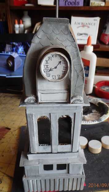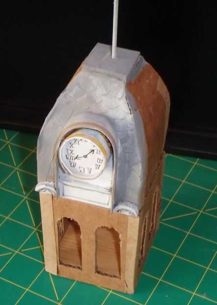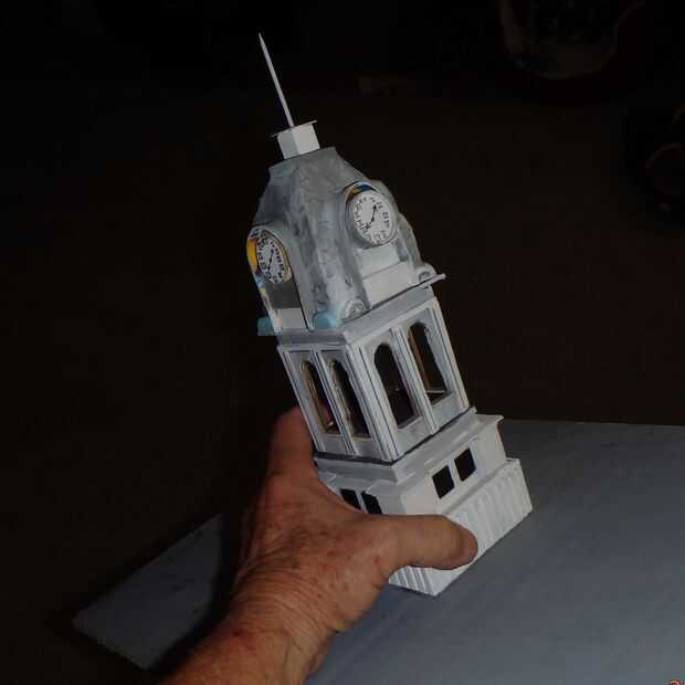 Al principio, estaba totalmente comprometido con el proyecto tuve muchas dudas acerca de ser capaz de llevarlo a cabo. Pero el fastidio de mis musas tiene lo mejor de mí, me ayudó a superar cualquier reticencia y empecé en la estructura de la torre pensando si podría hacer esto con éxito sería capaz de hacer el resto. La torre, como se muestra, utiliza cartulina, tablero de lámina perimétrica, pegamento, pintura y imaginación en la construcción.