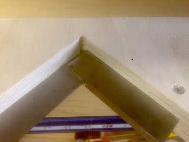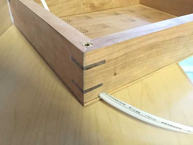 Antes de colocar el panel posterior, dirigen a una pequeña ranura para el cable eléctrico quepa. Con el cable en su lugar, para atornillar el panel trasero, que era fácil, pero era visible desde el lado. En los cuadros siguiente hice un rebajo corte con la fresadora de mesa y luego de la inserción del panel posterior al ras en el marco.
