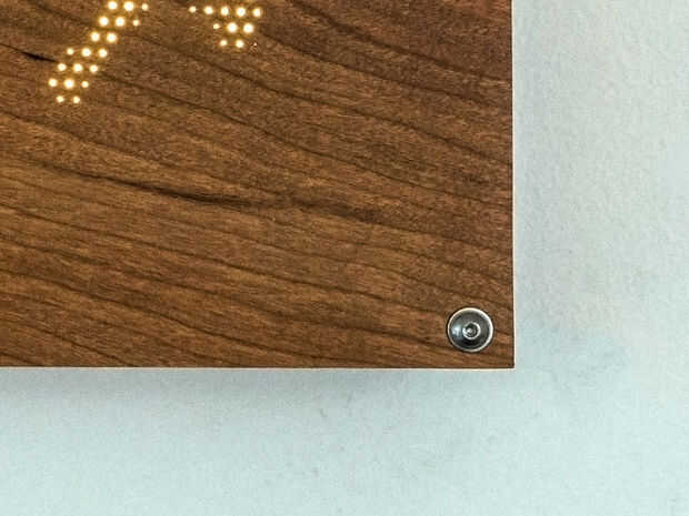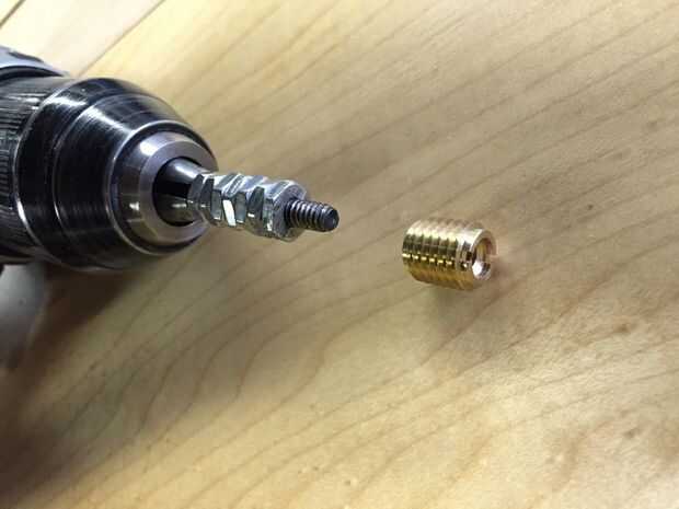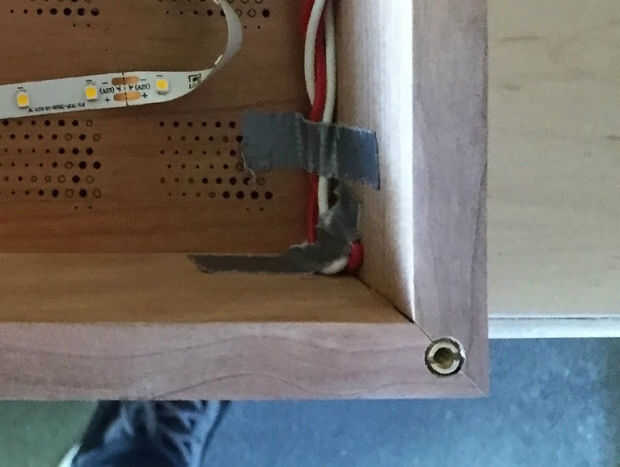 He utilizado insertos roscados para fijar los paneles y en algunos casos para fijar una capa desenfoque adicional de acrílico translúcido, que se detallan en el siguiente paso. Los insertos se instalaron con un taladro de baja velocidad, el par medio usando un perno y tuercas de la misma rosca, con un poco de pegamento para lubricar y fortalecer. Normalmente nunca sería poner un insert en una esquina a inglete, pero pensé que le daría una oportunidad porque quería que el hardware que en los rincones, para no distraer de la imagen. Tuve que perforar agujeros mucho más grandes que el tamaño recomendado para las inserciones y usar más pegamento alrededor de la estufa para asegurarse de que la fuerza conjunta no fue comprometida. No era la mejor idea, en iteraciones posteriores me mudé los puntos de inserción de las esquinas y se veia bien.,