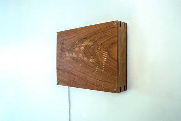 Madera cerezo, madera contrachapada, iluminación LED, película de difusión acrílico, hardware del metal
