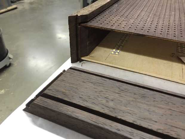 Esto fue difícil. Porque los paneles eran delgados, cedieron un poco incluso después de deslizarse en la ranura de ranura. Y todas las piezas marco cuatro tuvieron que caber juntos simultáneamente, con el pegamento, por lo que los paneles tuvieron que encajar limpiamente en la ranura en el borde más lejano del lado abierto donde fui deslizándolas en.