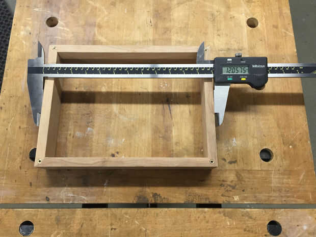 Las uniones de inglete se cortaron con un trineo en un conjunto de Sierra de mesa a 45° con la verificación del transportador. Usando una sierra de cortar simplemente no era lo suficientemente exacta.