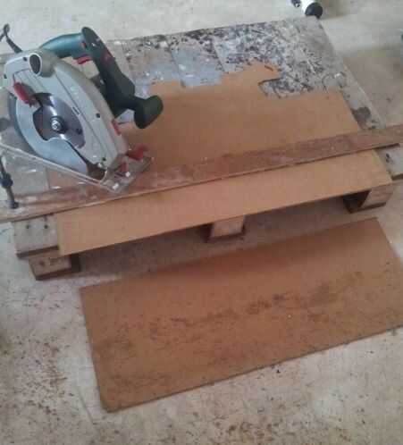 Esta es mi primera vez usando una sierra circular. Así que no tengo la confianza para hacer cortes rectos directamente con la sierra, por lo tanto hice una guía de la sierra.