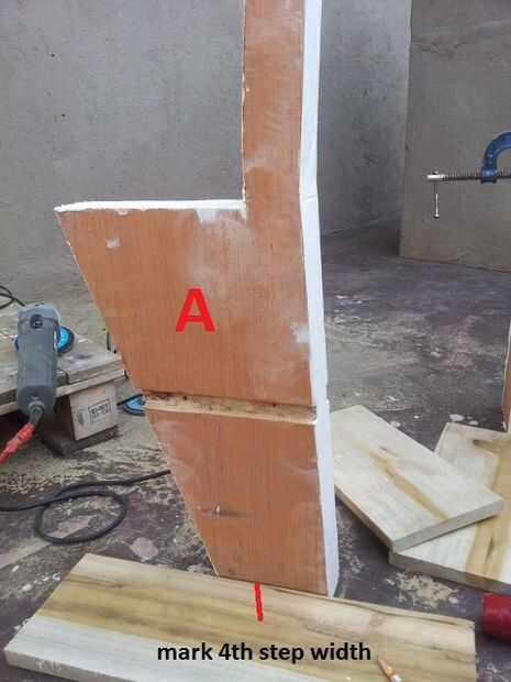 Coloque el 4to paso junto a la sección A y marcar el espesor de la madera. Cortar.