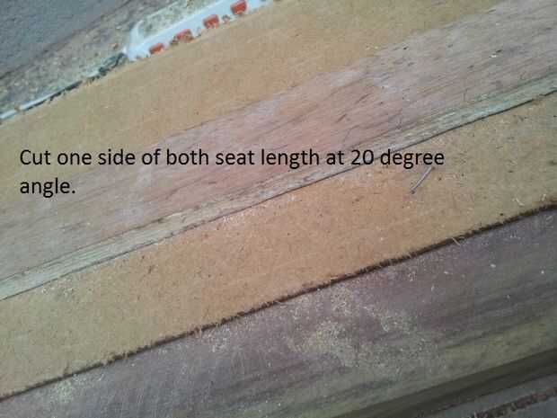 El ángulo de la hoja en 20 grados y corte la placa a lo largo. Ahora cortar dos tablas de 16". Paso uno en sección A y marca donde descansar la espalda sería. Asegúrese de que está realizando la Junta para que correspondería con el ángulo de 70 grados. Marque el respaldo y corte. Si todo es correcto el ancho interno debe ser igual a la longitud de la camilla. Una vez que se cortan las ranuras (añadir la brecha que es necesaria para la bisagra de piano) empuje el asiento y clavo hacia abajo. Debe haber un pequeño espacio para que cuando se fija la bisagra de piano sería al ras cuando se ha abierto y cerrado. Clavar el asiento.