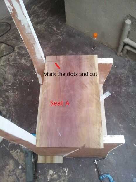 Ahora clavar el asiento. Recuerde que para que coincida con el ángulo y también para mantener el sitio de la bisagra.