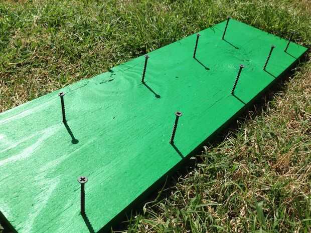 3) repetir para que usted termina con dos piezas y luego el tornillo de clavo de dedo del pie les en la pared con tornillos.