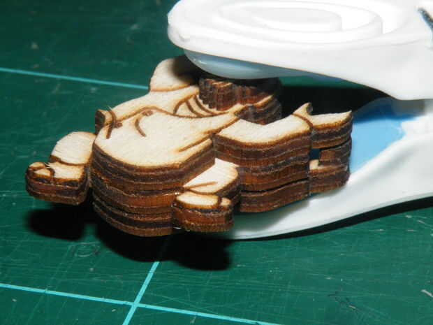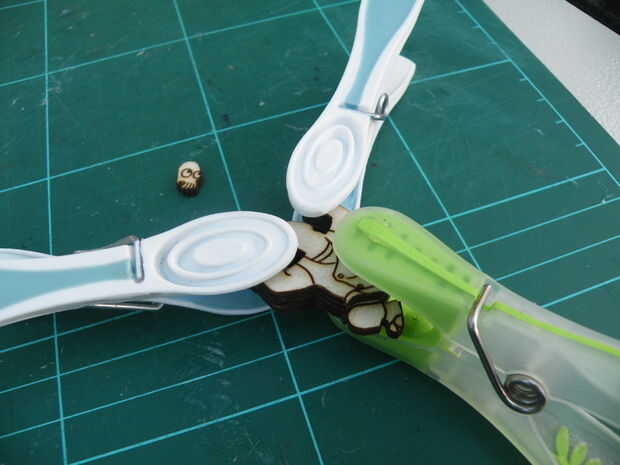 Una vez usted ha cortado los pedazos * espuma pegamento (yo usé woodglue PVA) en la capa trasera normal y agrega la capa con las patas y las puntas de sus garras.