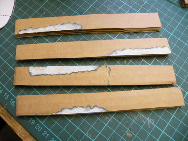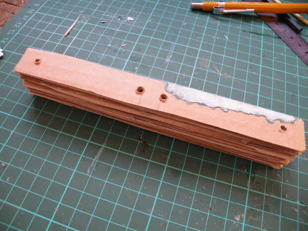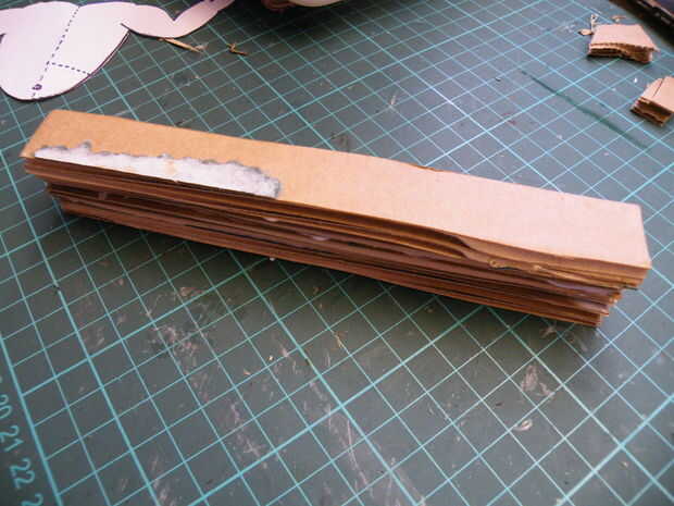 Con los restos de su tarjeta de cartón corrugado, hacer una viga simple, sobre tanto tiempo como la distancia entre las manos de gorila.