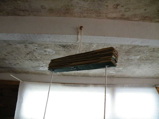 Corte otro pedazo de cuerda de cuatro metros de largo y rosca cada extremo hacia abajo aunque los orificios en los extremos de la viga. Se pueden utilizar dos piezas separadas, pero usando una sola pieza elimina la posibilidad de tirar a través de los agujeros de nudos. Para detener la cadena de deslizamiento, pega y acuñan piezas cortas de pincho de bambú en los agujeros con la cadena.