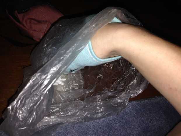 Hacer el calcetín interior entonces hacia fuera su mano dentro del calcetín. Recoger algunos tiza y luego tire la derecha calcetín (como son recoger caca de perro)