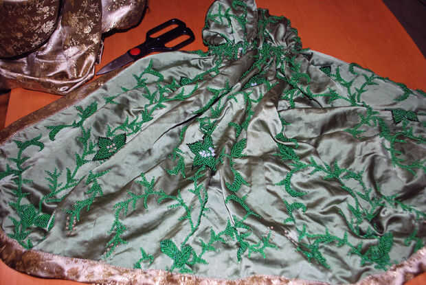 Un amigo donó una hermosa falda cuentas hace mucho tiempo. Estaba seguro de qué hacer con él en el momento, pero es demasiado fabuloso para deshacerse de. Ahora era el momento de usarlo! Me abrió la costura trasera, reunió a la parte superior junto con pernos de seguridad y había fijado a la base de la silla. Ven muy bien en el cuerpo de pavo real, y pensé que podía colgar para no coger la falda en la rueda trasera de la motocicleta.