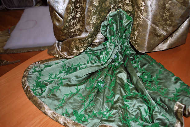 Para iniciar el proceso, sacó el asiento de la scooter, encontró todas las piezas de mi pavo real y empezó hurgando en el compartimiento de la tela. Quería probar las piezas sobre el asiento antes de decidir cómo poner todo junto. Algunos había donado drapeados sedosos que coincidió con mi combinación de colores, usé uno que cubra ligeramente la silla vespa. Puestas en su lugar, luego colocar el apoyo lumbar del pavo real y asientos. Até el ventilador del pavo real con el resto de la cabeza con la fantasía hacia el asiento. No estaba seguro de cómo que trabajaría con un cuerpo de pavo real viene de la parte posterior de la silla, pero es un buen lugar para empezar.